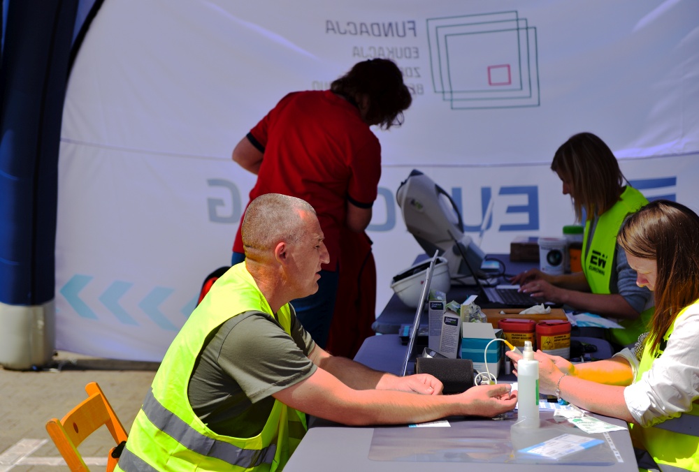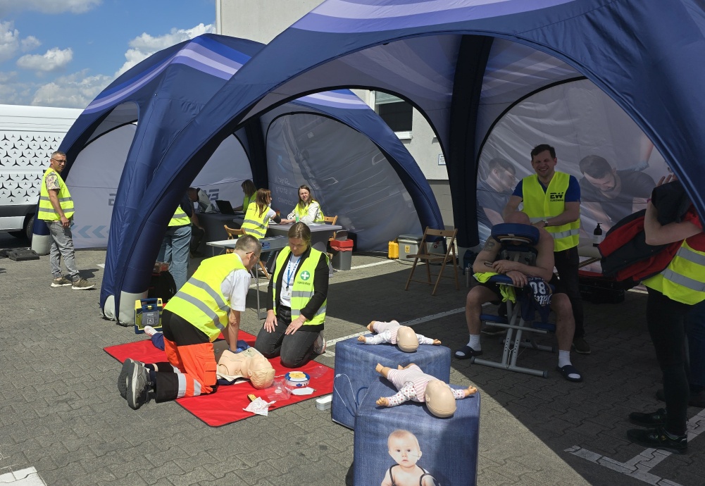W ciągu dnia naszą strefę odwiedziło ponad 90 kierowców zawodowych i wiele osób pracujących w centrum logistycznym. Każdy z odwiedzających mógł skorzystać z badania cukru, ciśnienia i SpO2, zbadać swój wzrok na skanerze Vision Light – w szczególności (poza badaniami refrakcji) swoje pole widzenia i jakość widzenia po zmroku. Kierowcy mogli także skorzystać z porad profesjonalnego fizjoterapeuty, a także z wykonywanych przez niego masaży. Całość dopełniła nauka pierwszej pomocy z której bardzo chętnie korzystali nasi goście.