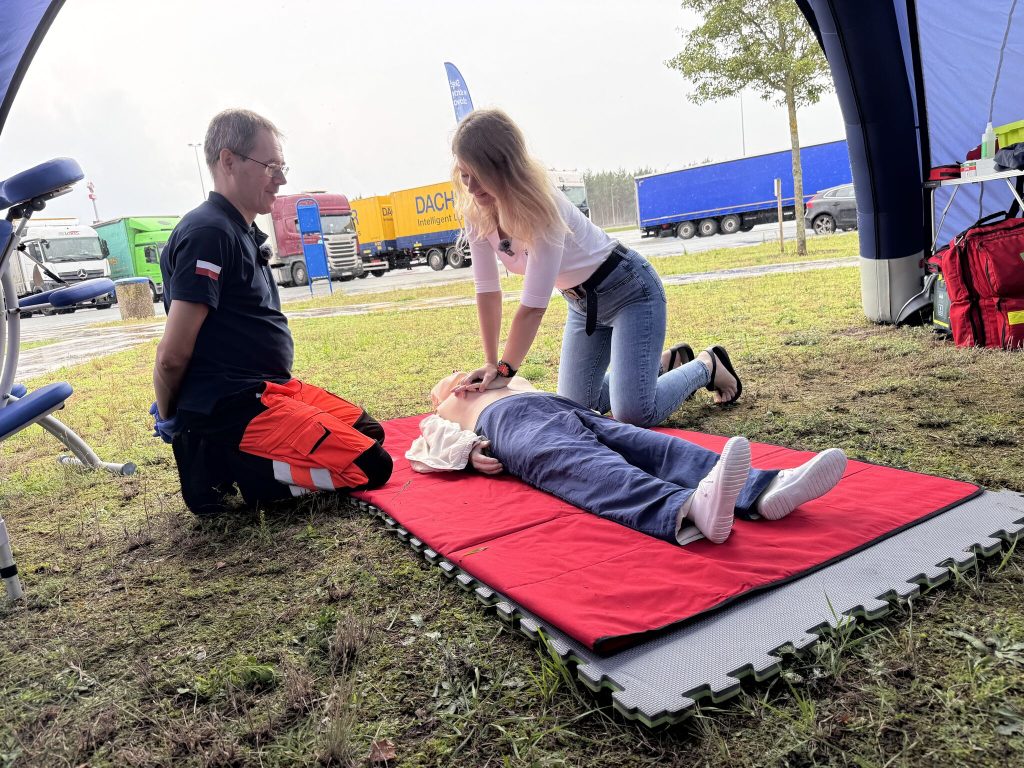 23 lipca br. zawodowi kierowcy w ramach przerwy w trasie mogli skorzystać z praktycznej wiedzy, porad i bezpłatnych badań wzroku, ciśnienia i poziomu glukozy we krwi. Chętni mogli sprawdzić swoje umiejętności w zakresie udzielania pierwszej pomocy, a zmęczeni długą jazdą z masażu i porad fizjoterapeuty.